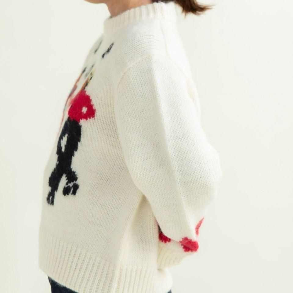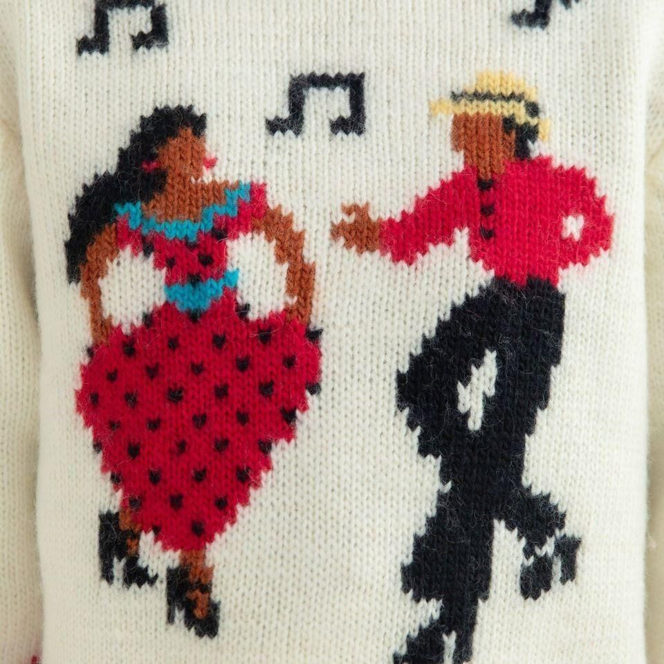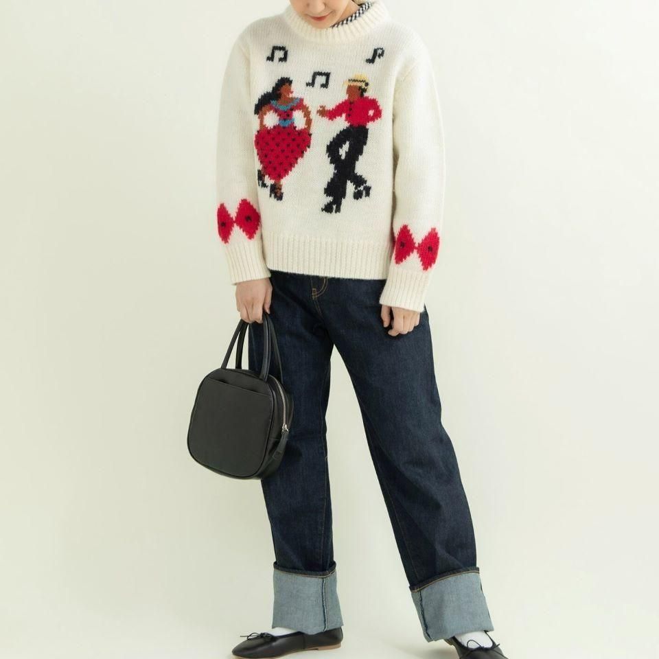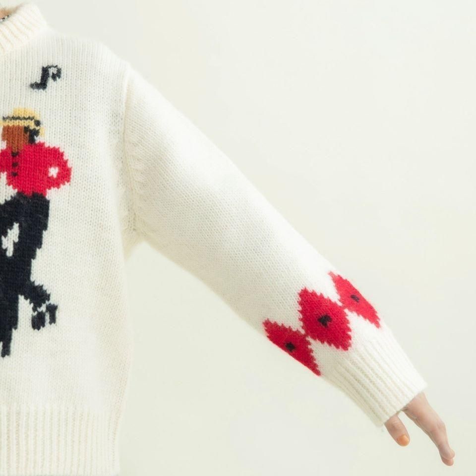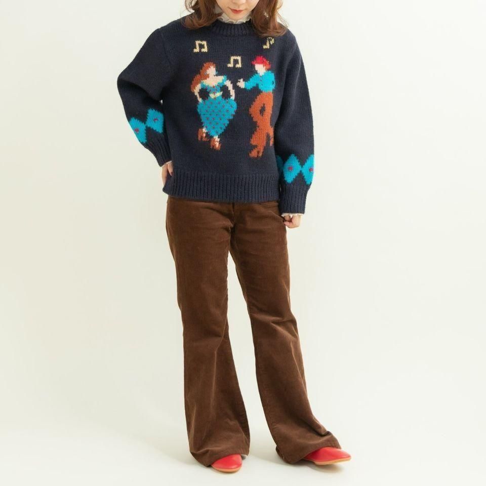 古着のニットを参考に、フラメンコダンサーが楽しそうに踊っているユニークな姿をモチーフにしました。