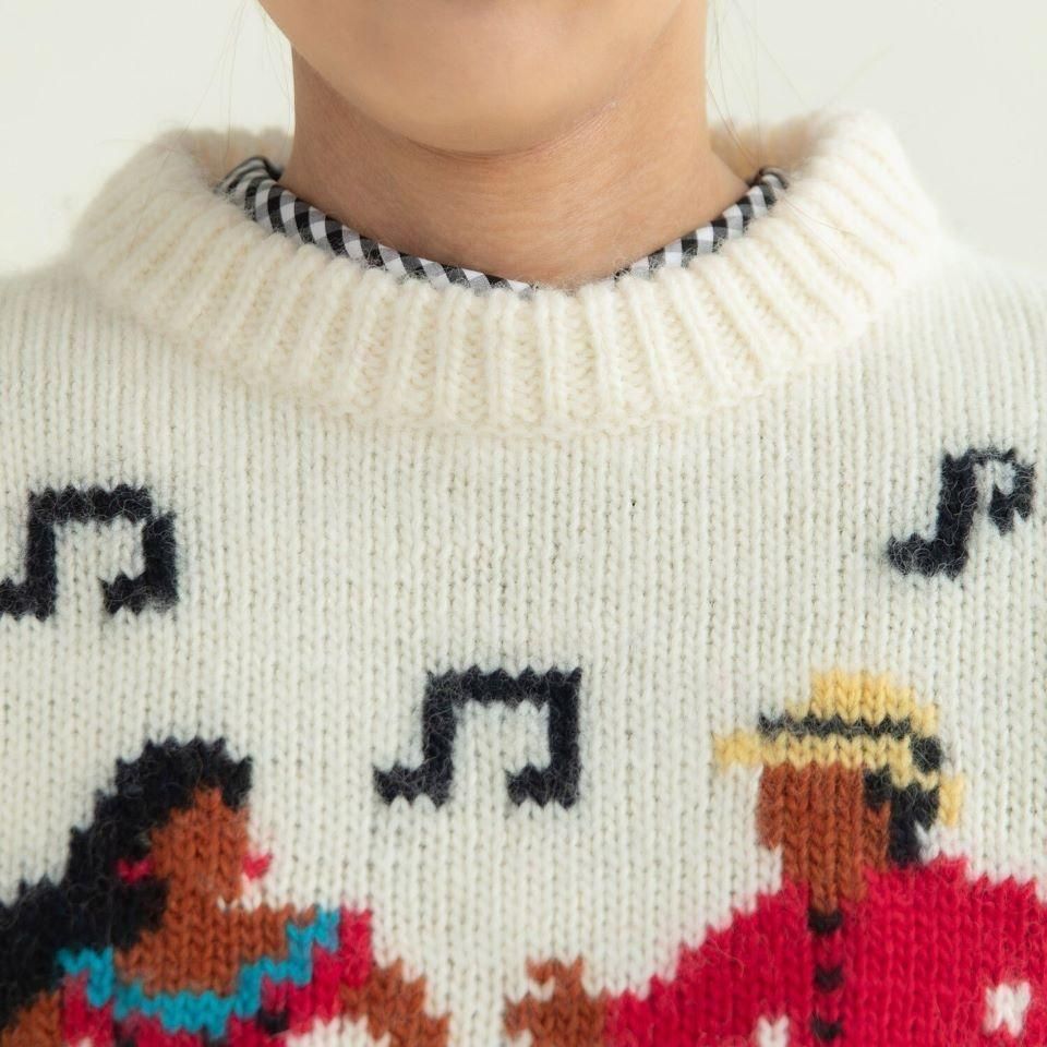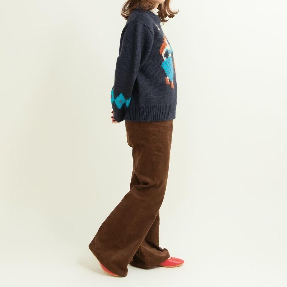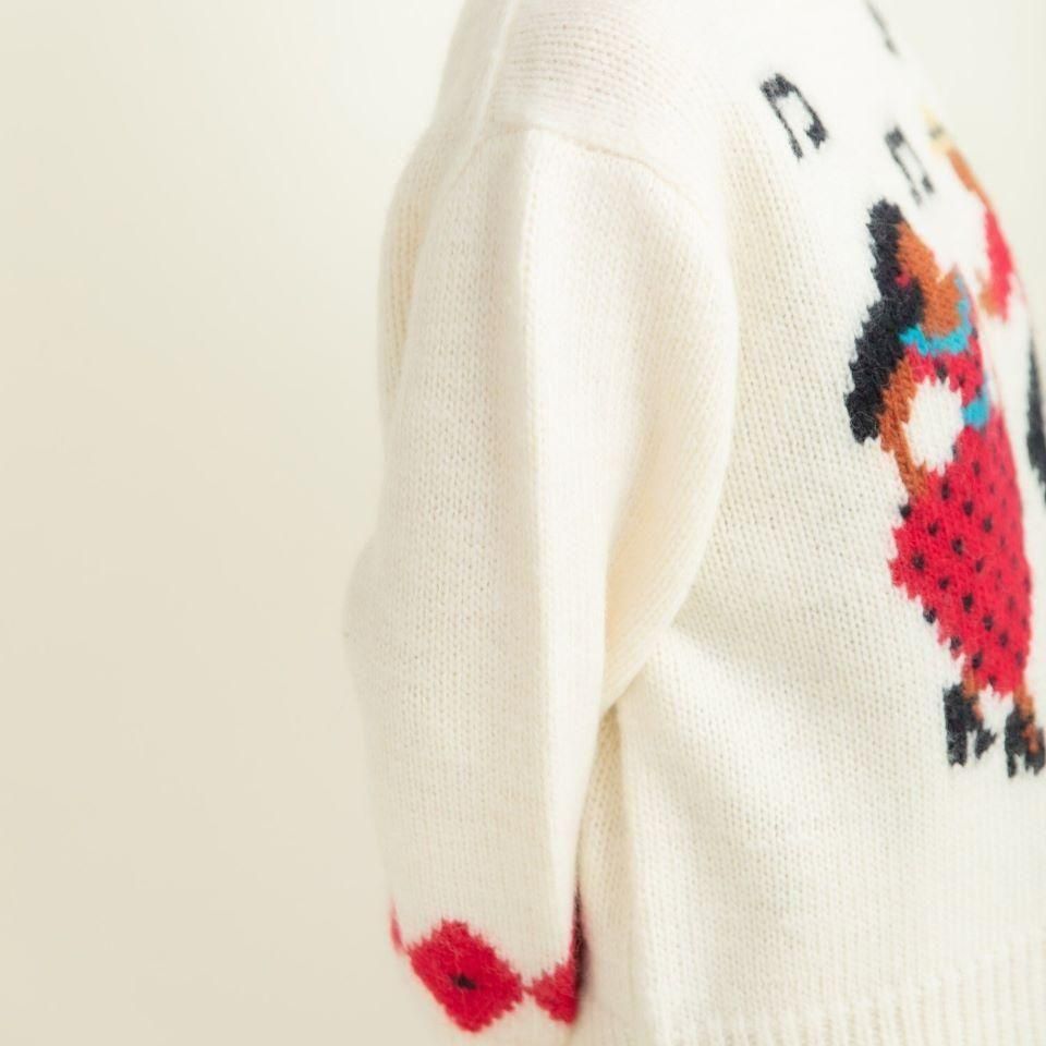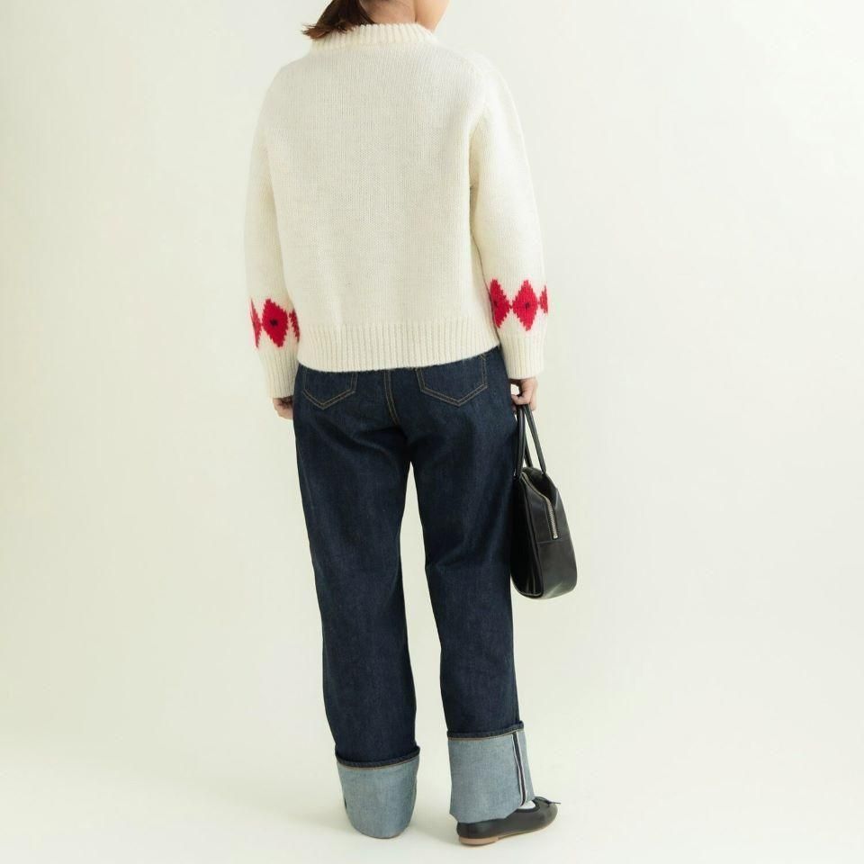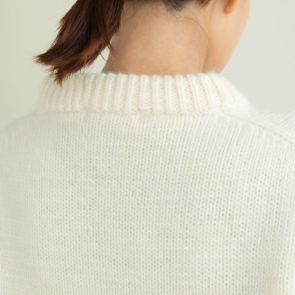 柄を編み入れるインターシャの技法を用いて、ローゲージでざっくりと編むことで、手編みのような温かみある風合いです。