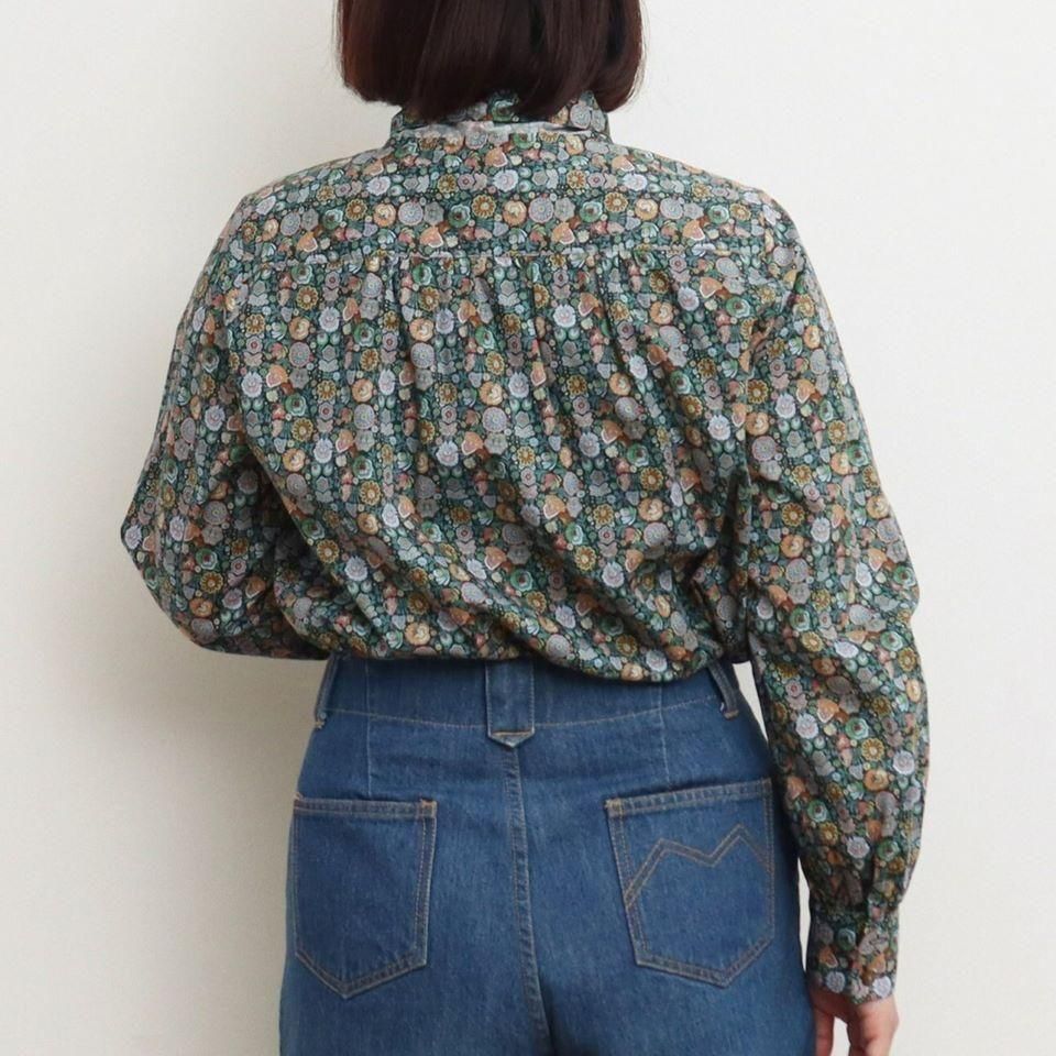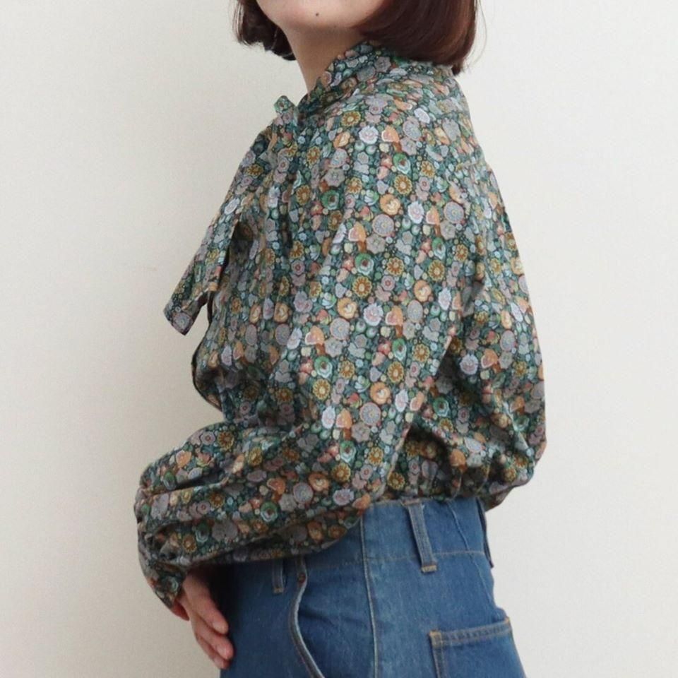形は今の気分に合わせて、定番のボウタイブラウスよりもややゆったりとした着やすいサイジングにアップグレード。