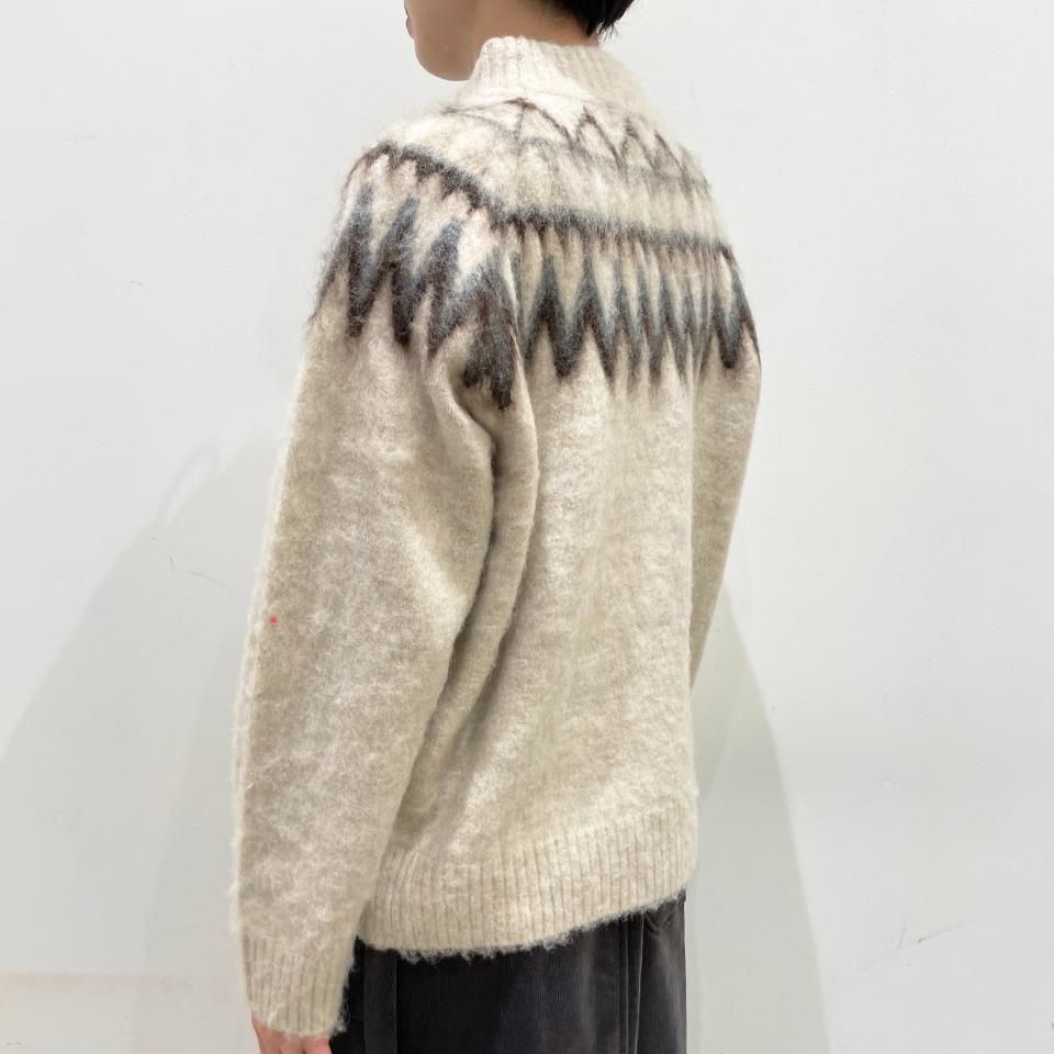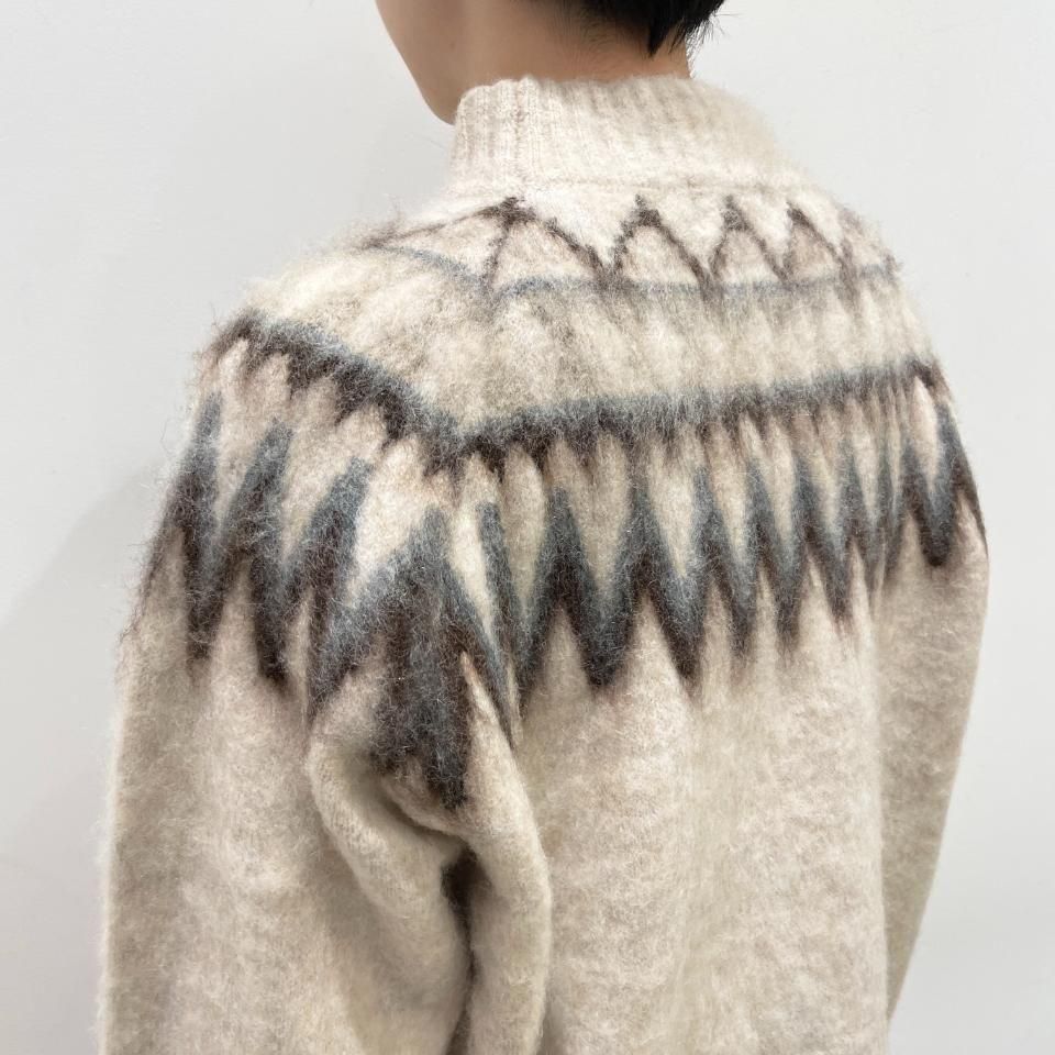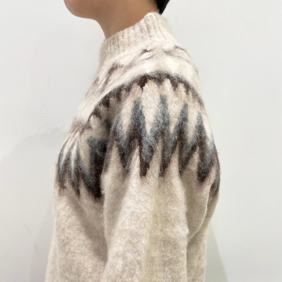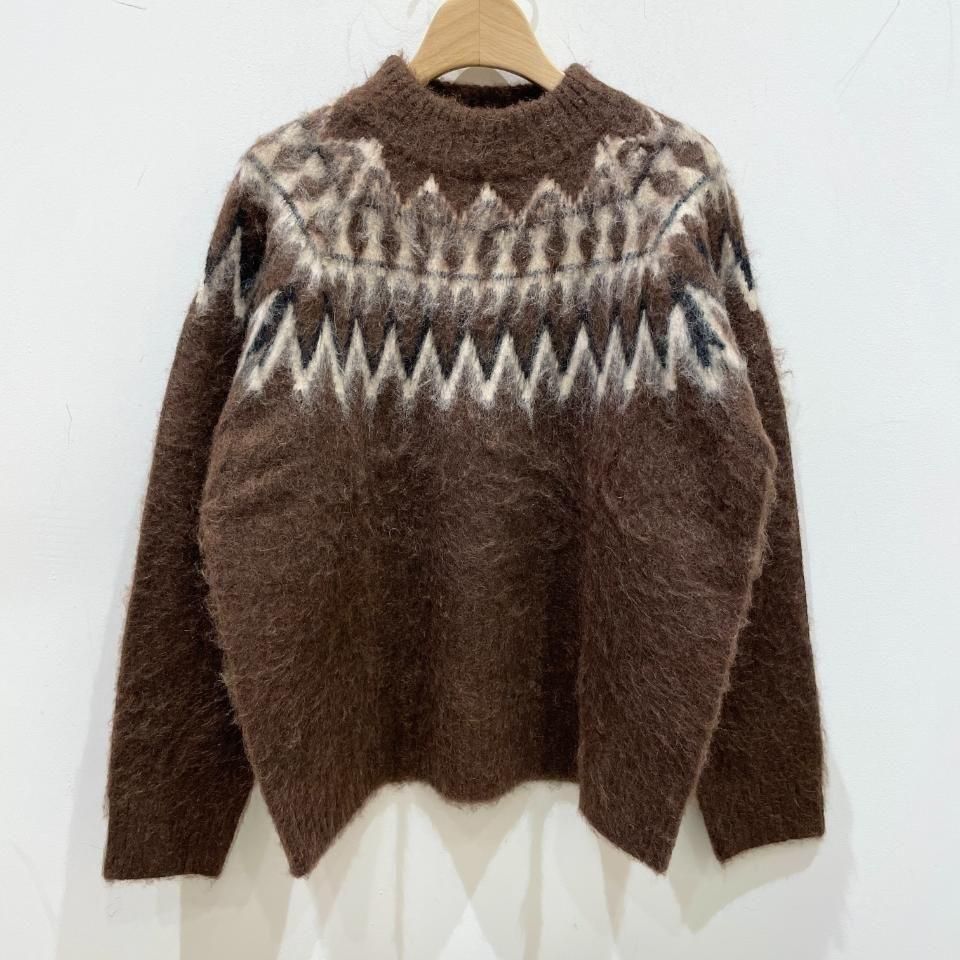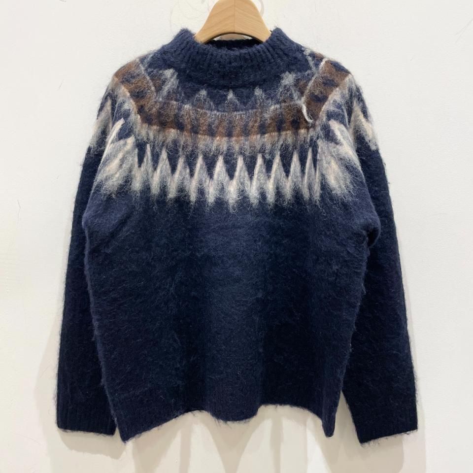 ノルディック柄が印象的なニットプルオーバー。