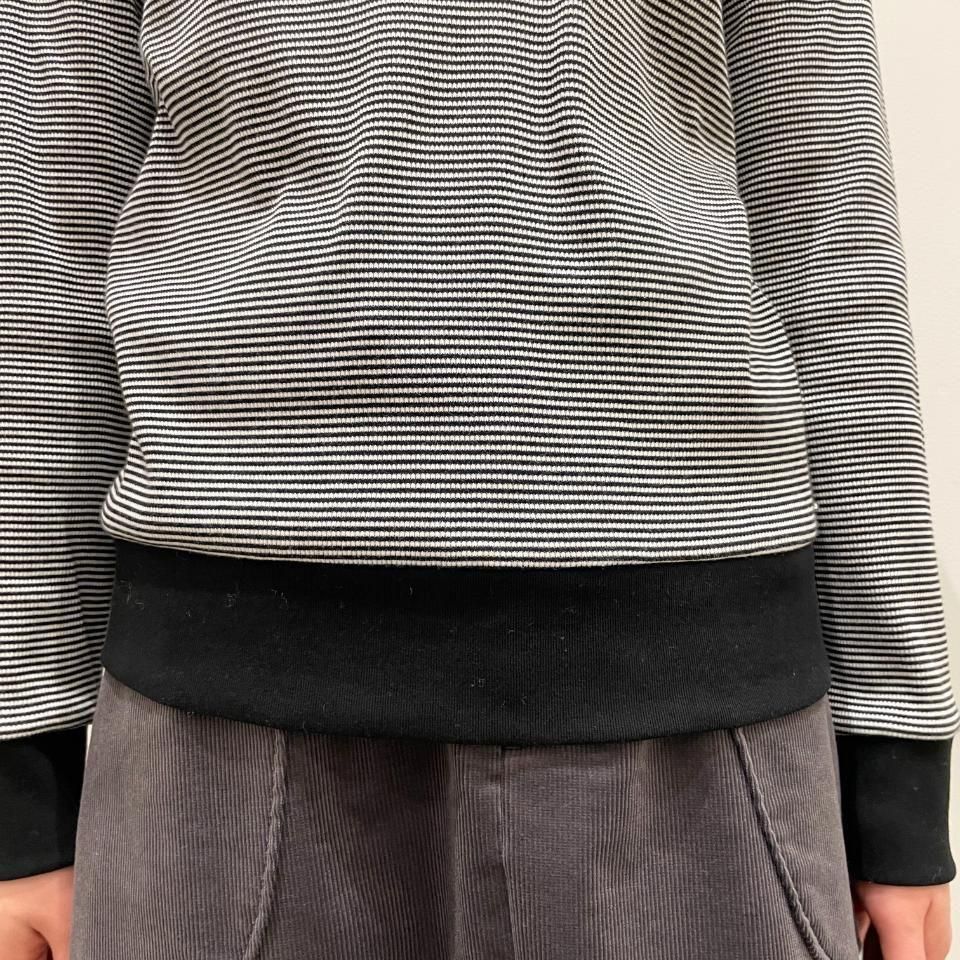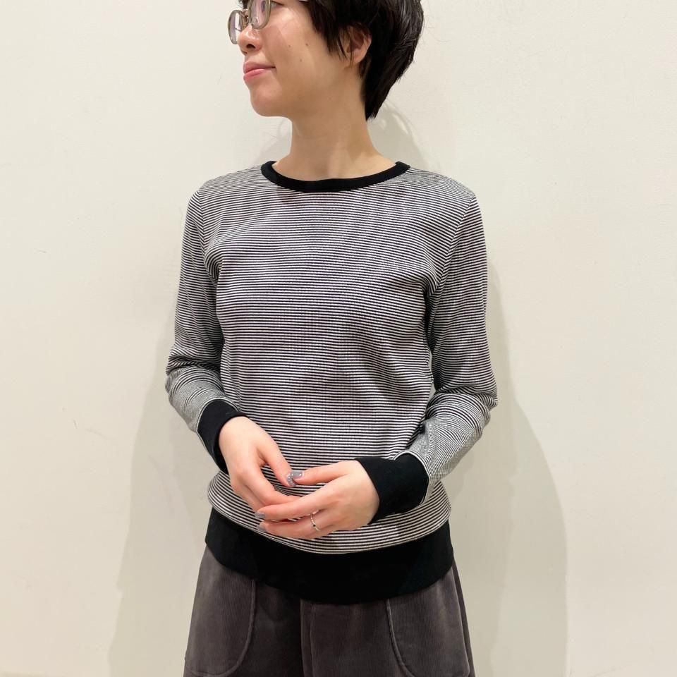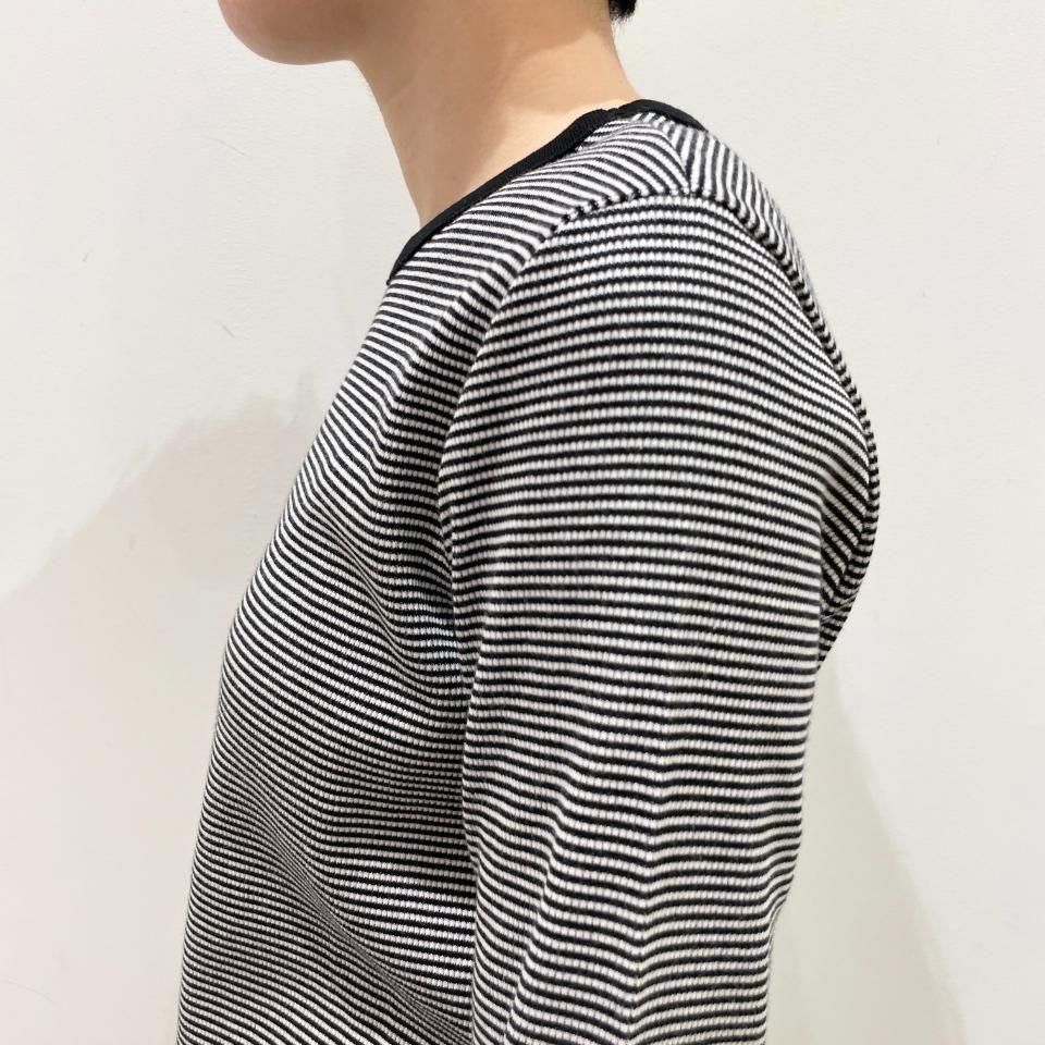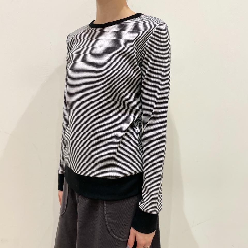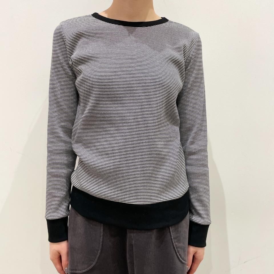 配色リブでメリハリをつけたコットンテレコ生地のボーダーロングスリーブTシャツ。