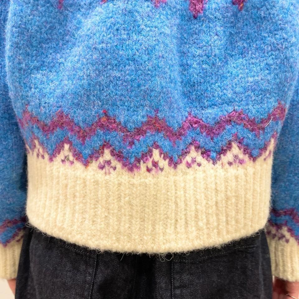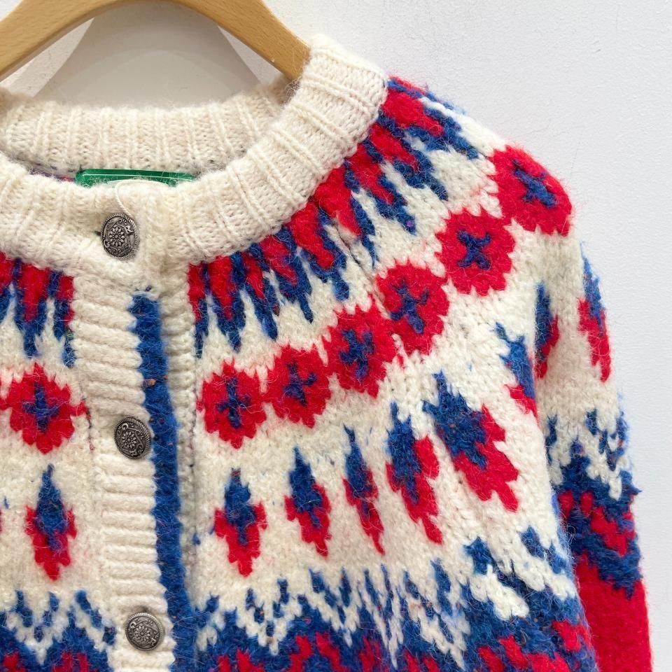 鮮やかな色使いをしながらも、なじみの良いノルディックニットカーディガン。